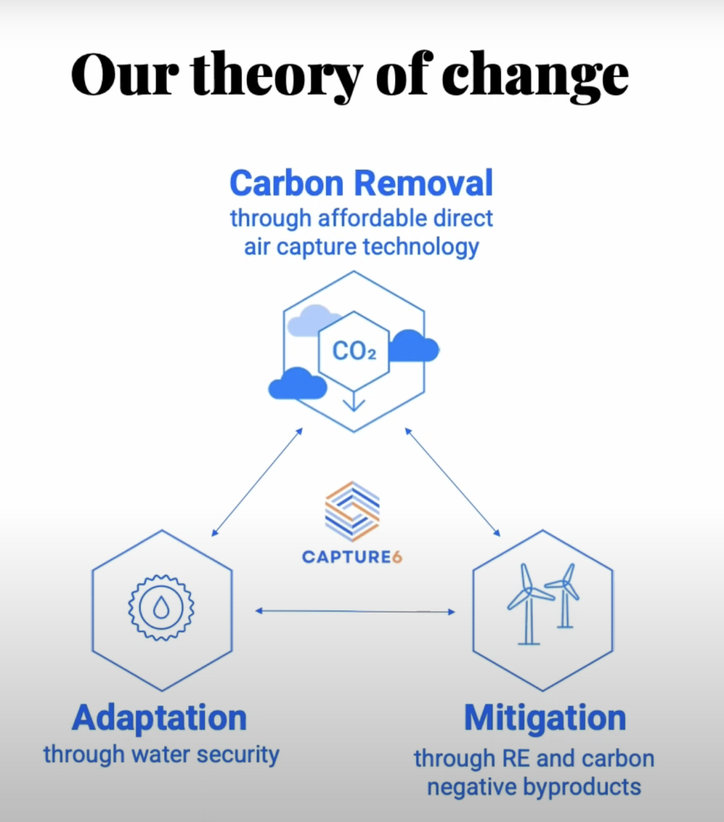 Capture6’s theory of change outlines how innovative water reuse and carbon removal technologies can drive environmental and economic impact. Image Source: YouTube / Isle Global.