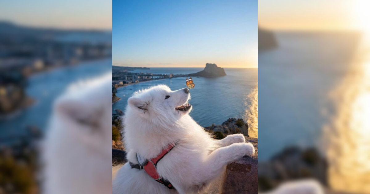 Just a happy little floof enjoying the view and making friends with a butterfly. Add a dreamy sunset, and this is the kind of moment that melts your heart! Have a sweet photo of your pet? Let’s see it!