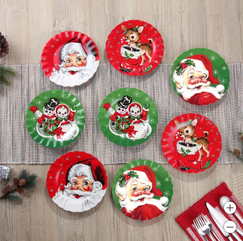 These plates are a thoughtful choice that combines practicality with a touch of nostalgia. They're an affordable way to add a sprinkle of vintage charm to any holiday table setting.