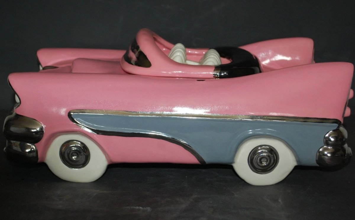 Glenn Appleman’s vintage car jars combine collectible ceramics with retro auto flair. Image source: eBay (8289raymond).