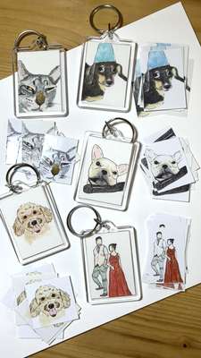 I've been on the lookout for budget-friendly gifts for my friends, and I’ve decided to make my own this year! I painted my friends' pets and put them into acrylic keychains. Then, I had them scanned and printed onto sticket papers!
