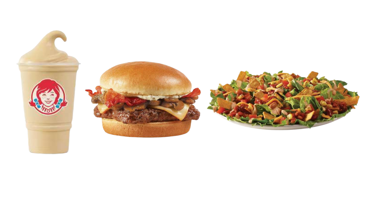 - The new menu features the mushroom bacon cheeseburger and an updated version of Wendy's taco salad.