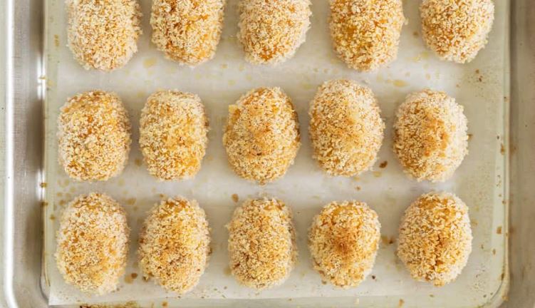 - Form the chicken mixture into 1-tablespoon-size balls and roll in bread crumbs.