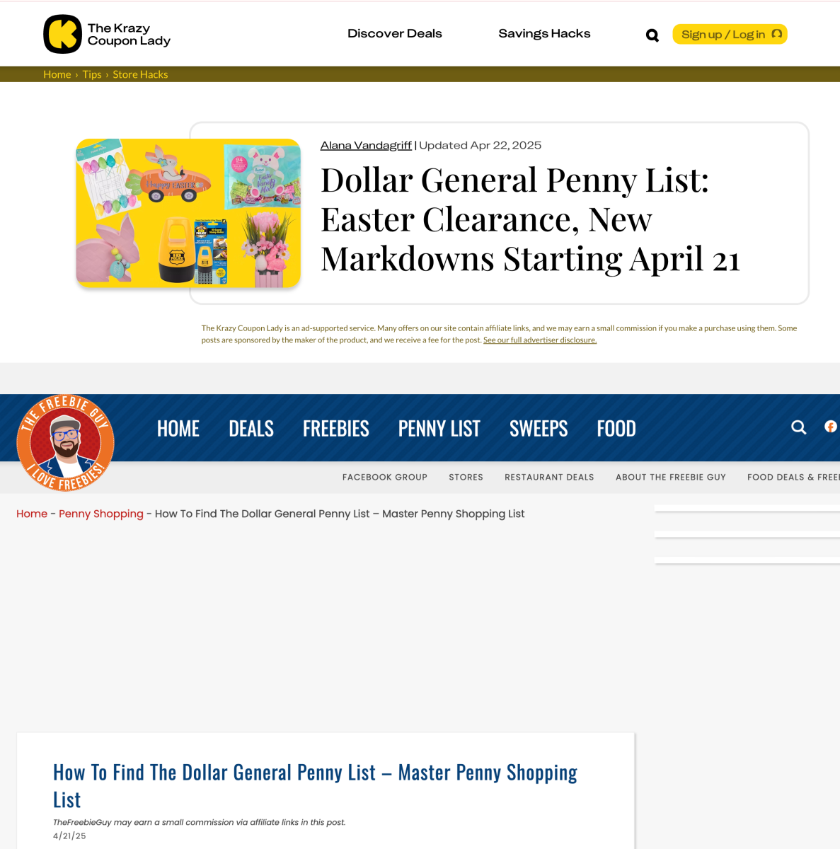 Information on these exclusive deals is often sourced from insider tips and shared on various deal-hunting forums and websites like The Krazy Coupon Lady and The Freebie Guy. Image source: The Krazy Coupon Lady and The Freebie Guy.