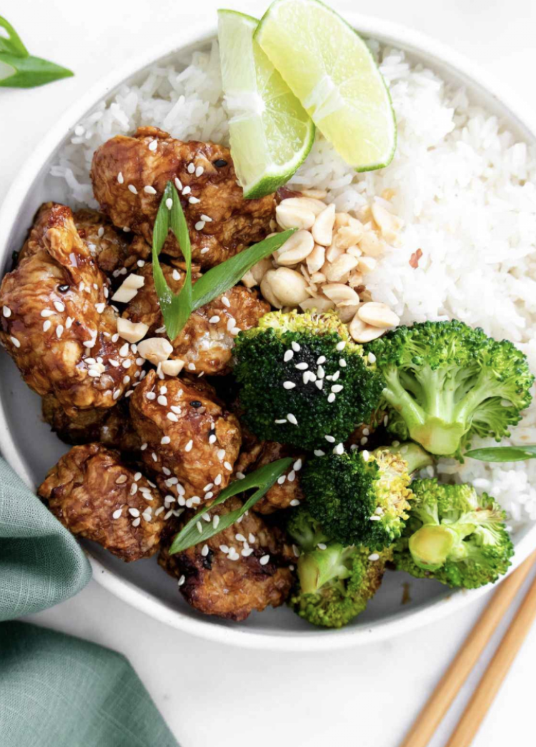 Enjoy a healthier take on takeout with crispy, gluten-free sesame chicken, made effortlessly in the air fryer. Image Source: Easy Wholesome.