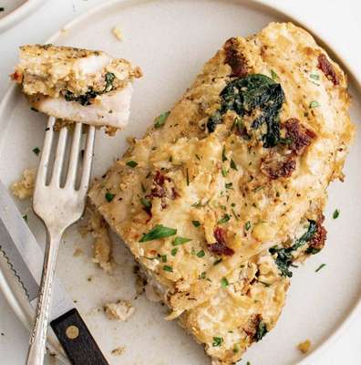 Impress your guests with this elegant dish of chicken stuffed with cheese and spinach, cooked to perfection in just 20 minutes.