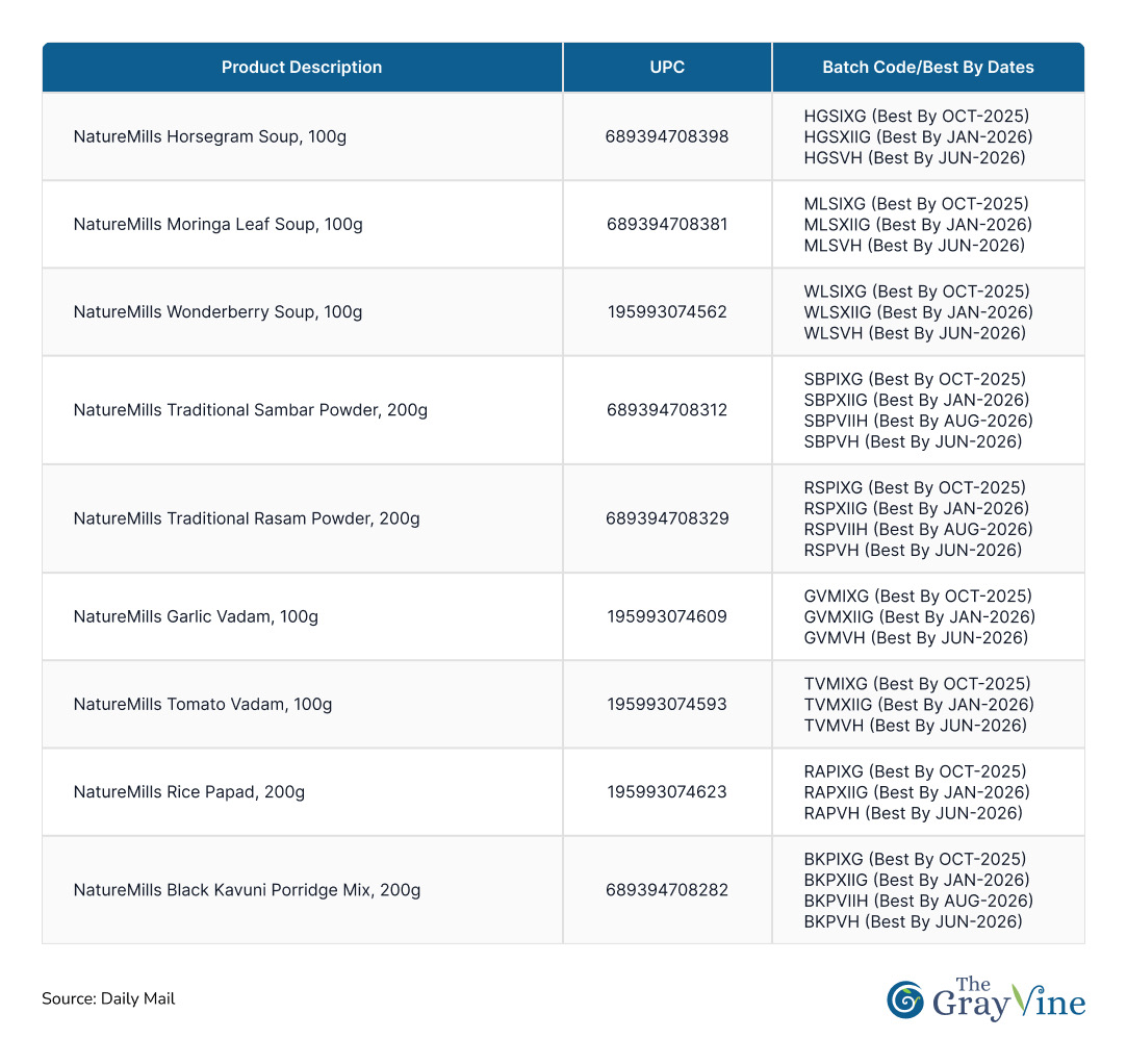 - Affected products were sold nationwide between December 2023 and May 2025.