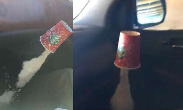 The Starbucks cup was not the scene of a beverage blunder but rather the stage for an adorable canine caper.
